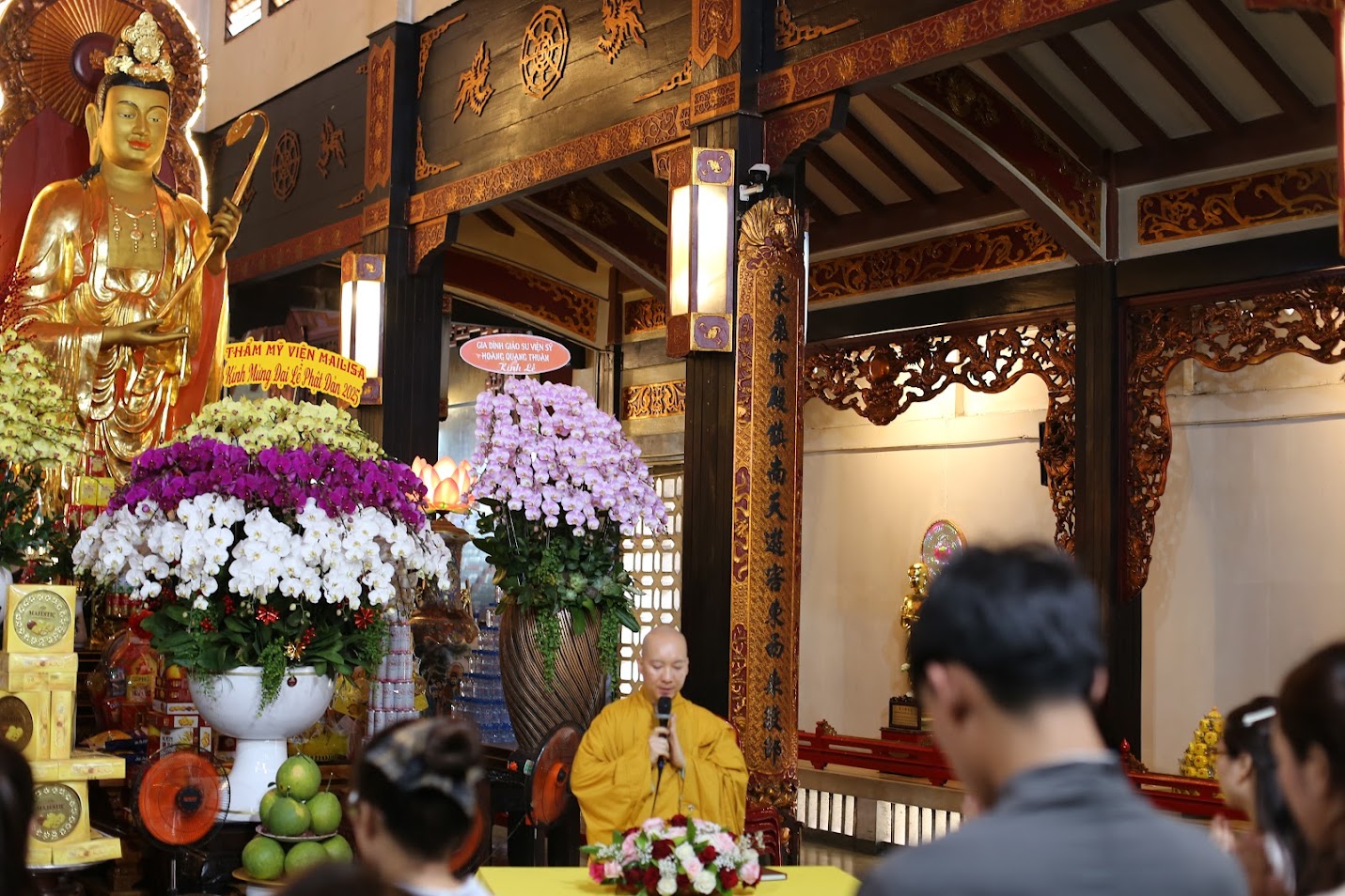 Thượng tọa Thích Nguyên Các – Phó Trụ trì Tổ đình Vĩnh Nghiêm đã có buổi giảng pháp ý nghĩa về chủ đề “Hướng về Tam bảo”, giúp các Phật tử thêm hiểu sâu sắc về ý nghĩa và giá trị của việc quy y.Giữa không gian tĩnh lặng, khói hương trầm quyện tỏa, Trưởng lão Hòa thượng Phó Pháp Chủ đã cử hành nghi lễ niêm hương bạch Phật, đảnh lễ Tam bảo sau đó Trưởng lão Hòa thượng Phó Pháp Chủ truyền pháp tam quy và ngũ giới cho hàng Phật tử.